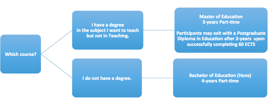 If you do not have a first degree in the subject/area you are interested in teaching, you would need to follow one of the Bachelor of Education programmes.